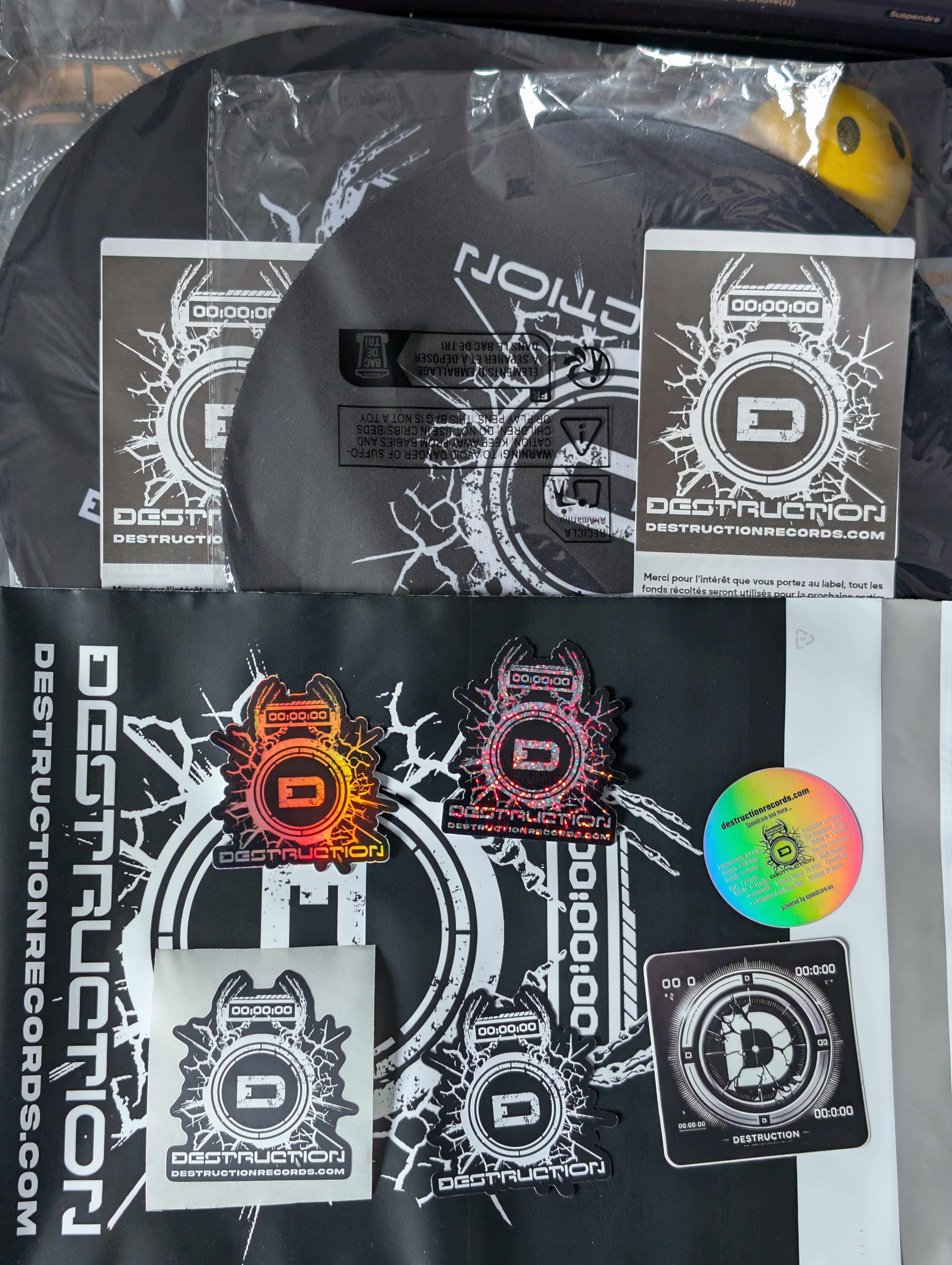 DESTRUCTION : a new french 'speedcore-but-not-only' label run by Lawrencium, already well-known from the european coreheads for his powerful & amazing live-act, fresh speedcore with strong good ol'gabber & harshnoise influences. This first release is a split A.I.D.S (aka Helius Zhamiq from the K-bal hardcore sound-system, K-ni-bal records boss, part of the Labitox & Malaria projects, and last but not least one of the best hard/speedcore djs i've ever heard) vs Lawrencium himself. A brand new taste, while french hardcore is still celebrating its own death, in a painful & neverending agony, according to the gabberish or deathchant-like dysentery of recent releases. Strong exceptions : Hangars Liquides, definitively out of past / into the future, Underground Perversions Records, which three last releases are just perfect, and the last two Homicide by Mouse & NoName. DESTRUCTION it's said, and the tracks are really this, fast, powerful, original & well-produced. A.I.D.S introduces us with Tharkh, a dark, ambiant soundscape - but Katog leads us directly at the heart of the machine, deep kicks, a storm of industrial madness and metallic shocks, remembering me in a more brutal way the Korrigan (HL6)... Same spirit, the best of paris hardcore, but the double-speed mood & broken breaks are the sound of today - and tomorrow. Last track Katarak is speedcore avalanche, not just fasten hardcore but high velocity bullets, reject of linear patterns, and traps after traps for the innocent victims... The happy masochists should appreciate, after the first shock, this renewed fury that definitively kills all pragmatism... Ignition! On the other side, symetric tracks by Lawrencium : Crash en Sol majeur shots the walls of a claustrophobic space, no oxygen, as do some motionless Neurocore' short tracks. Immediatly follows the main track of the release : Massacre/Destruction, a long escape into the pleasures of speedcore double-kicks that can be played at any - even extreme - speed, always with huge sound, yeah nice! Fast patterns are howling rage, distorted screams, then come half-tempo stomps, brutal groove, then back to the unleashed ferocity... Killer track. All is ashieved with Proton, strange mutation of speedcore and rumbling harshnoise... Far from what could be attempted of this mix, but still no compromise, and the proof there's a universe to explore between pure noize (Merzbow, Menche, Masonna...) and abstract speedcore, the one that forgets all the gabber & hardcore gimmicks... Atmospheric, uncompromised, DESTRUCTION is, as of NOW, a label to follow (DO we have any choice?). LWIK